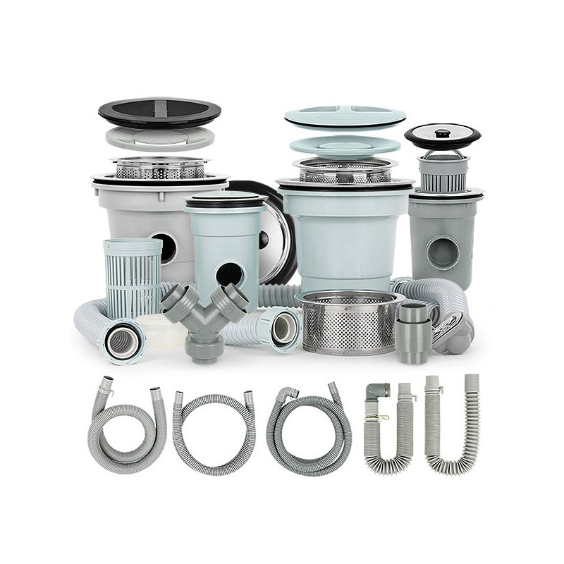 Acacia Living sink drain replacement drain pipe set plumbing kitchen stainless steel sink net drain hose, 04_sink set 2 units
