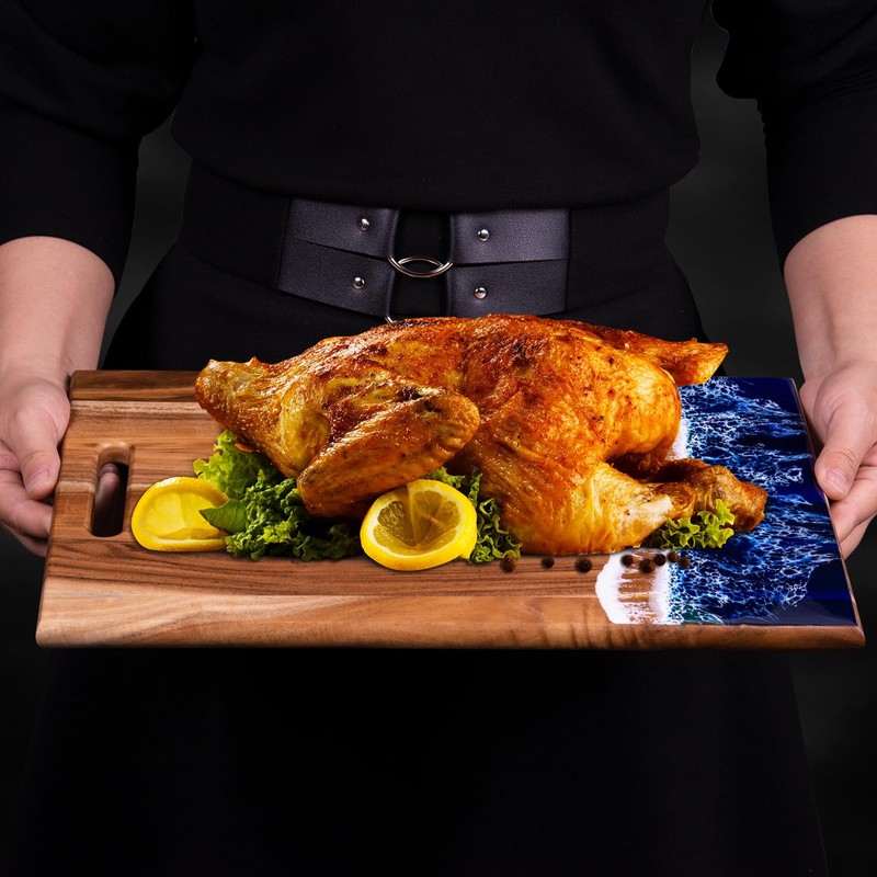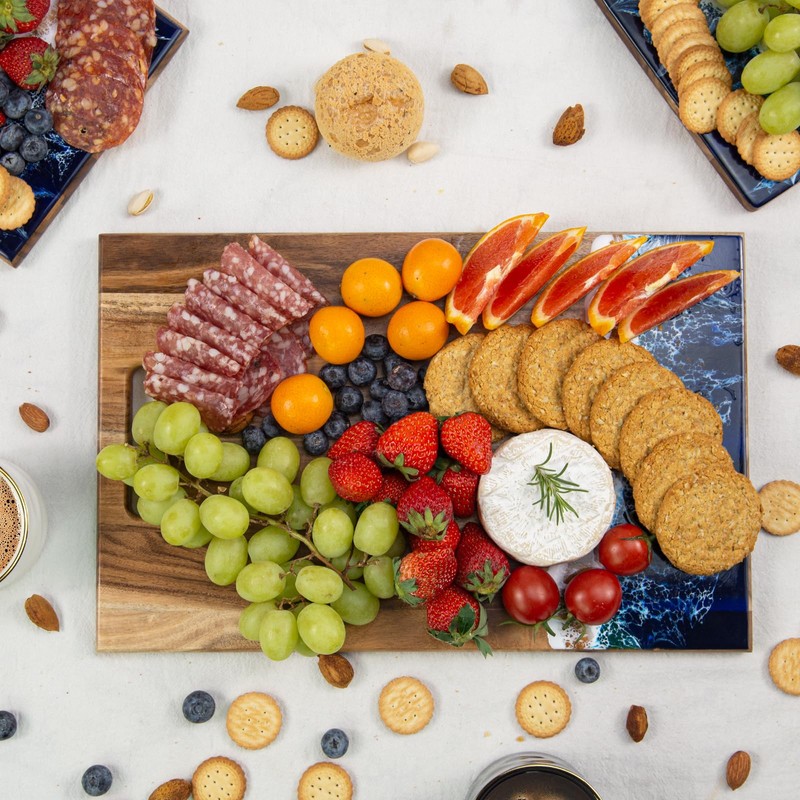 - Unique Design: Each piece is ONE and ONLY, what you receive may be different from picture. Each cutting board boasts a one-of-a-kind pattern, created by the harmonious blend of natural wood grains and colorful resin.