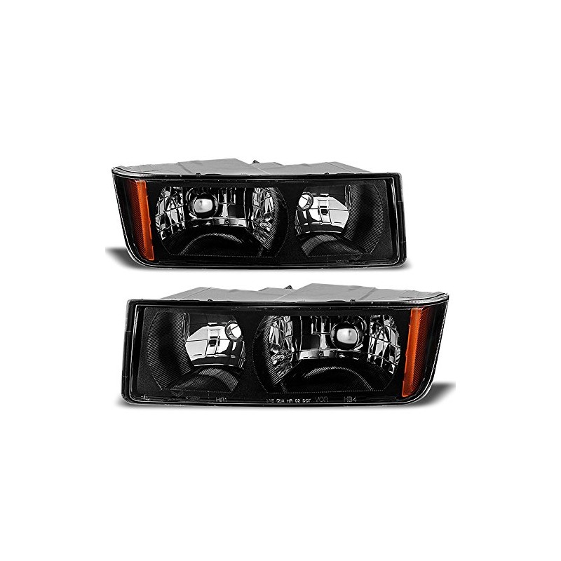 ACANII - For 2002-2006 Chevy Avalanche Black 1500 2500 with Body Cladding Headlights Headlamps Driver + Passenger Side