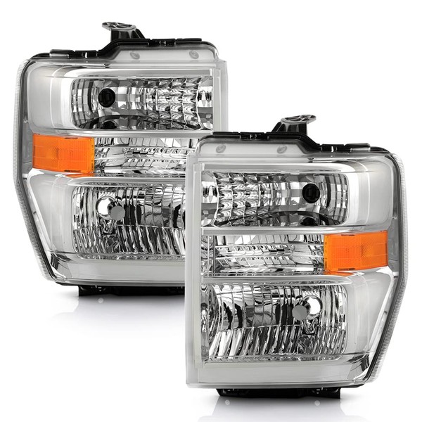 ACANII - For 2008-2014 Ford E150 E250 E350 All Models Chrome Housing Headlights Headlamps Pair Replacement Left+Right