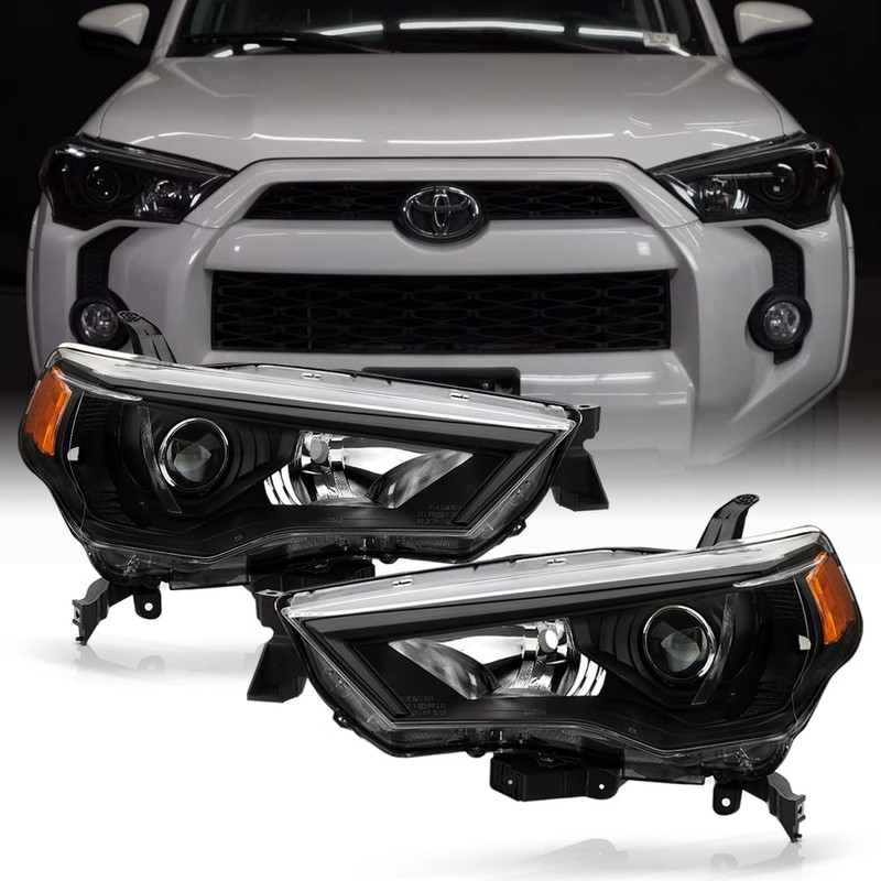 ACANII - For 2014-2020 Toyota 4Runner Halogen Black Projector Headlights Headlamps Assembly Replacement Pair Left+Right