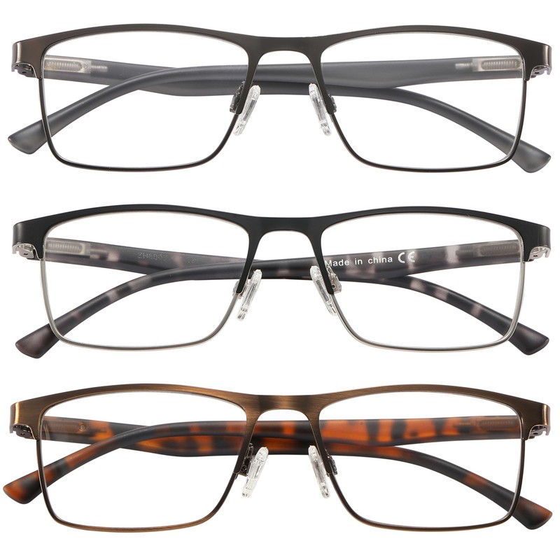 acavefox 3 Pack Reading Glasses Men Readers Blue Light Blocking Anti-UV Metal Front Frame And Spring Hinge With Accurate Magnification Eyeglasses 2.0+
