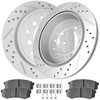 - 【AUTOMOTIVE REPLACEMENT BRAKE KITS INCLUDES】:2x Rear Drilled & Slotted Disc Brake Rotors(Vented Rotors size 312 mm); 4x Rear Ceramic Brake Pads with Hardware Included