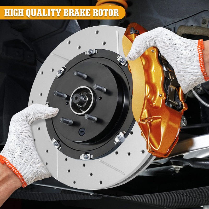 - 【HIGH-QUALITY CRAFTSMANSHIP】:Vented Rotor(Drilled and Slotted Disc Brake Rotors) are Plated with Silver Coated Zinc Dichromate for Attractive Protection Against Rust and Corrosion and Long Service Life. Premium Low-Dust Ceramic Formula Brake Pads Keep Rims Clean and Reduce Noise