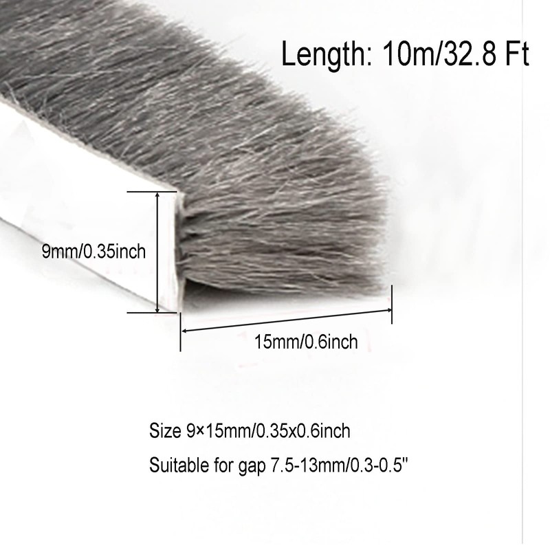 - 【ADHESIVE PILE WEATHER STRIP SIZE】32ft (10M) length, 9 x 15mm(0.35 x 0.6 inches), suitable for gaps from 7.5-13mm(0.3-0.5inches). Please be sure to measure the gap size of the door or window,and then choose the right size of the draft stopper you want.