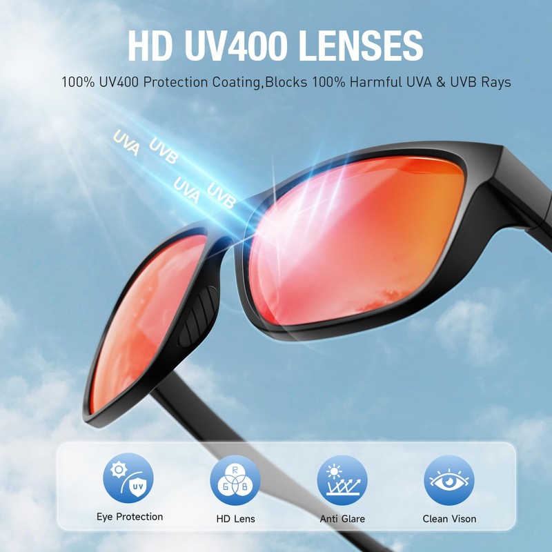 - HD POLARIZED LENS► ACBLUCE polarized men's sunglasses feature high quality UV400 TAC lenses, that filter out over 99% of harmful UV rays, providing excellent protection for your eyes, and the polarized lens offers high contrast, clear vision and softens the light to keep your eyes comfortable.
