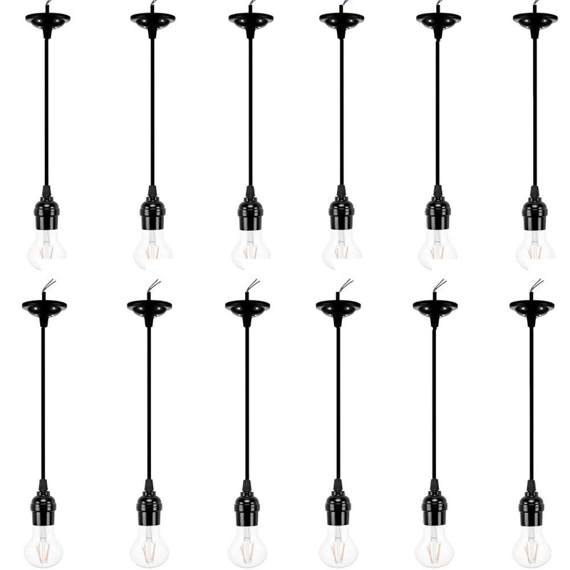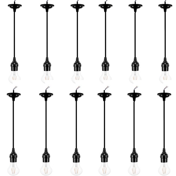 ACBungji 12 Packs Pendant Light Kit Cord, Hanging Light Socket Lamp Holder with Adjustable 4ft Lantern Wire Screw in E26 Edison Base Bulb for Kitchen Dining Room,Black