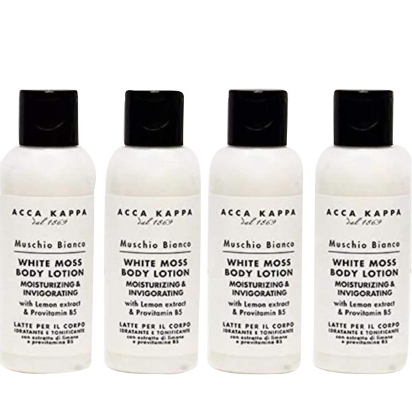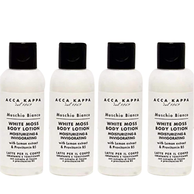 Acca Kappa White Moss Body Lotion Travel Bottles Set of 4 - Hotel Ammenity Collection.