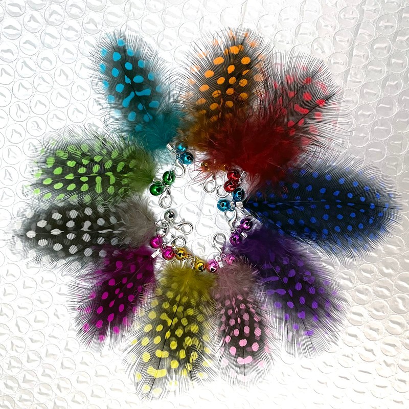 - Design: Cat toy feather replacement head, a variety of colors, colorful. Stimulating their hunting instincts, they jump, strike, chase and keep the cat healthy. The handle is comfortable and resilient. 10 Brightly colored feathers that excite cats even more.