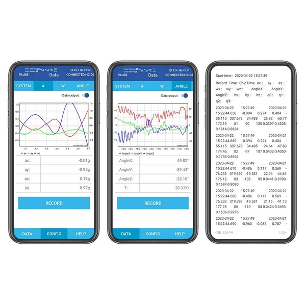 - High Performance: Solid data output: 3-axis XYZ (pitch roll yaw) acceleration, gyro, angle, magnetic field. You can choose between measurement range and output rate (0.2-200Hz). Video link: www.youtube.com/c/WITMOTION/search? query=BWT901CL