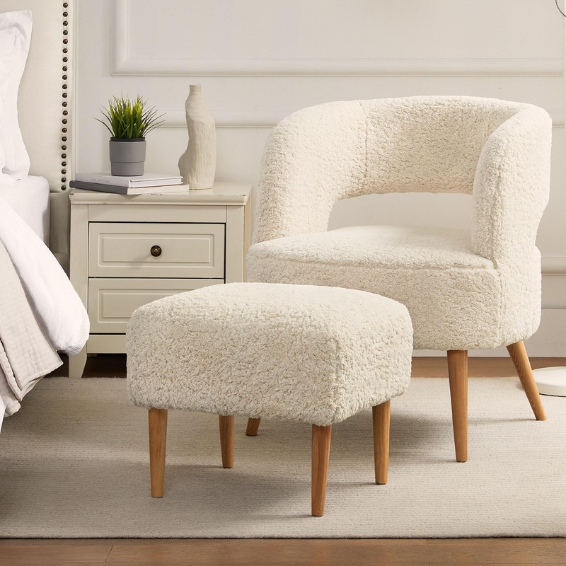 • Strong and Sturdy:Sherpa chair with ottoman is constructed of solid wood frame and solid wood legs, which enhance the stability and durability of the chair. With a maximum weight capacity of up to 300 pounds, you don't need to worry about safety when using it.