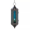 - Deepest ocean blue adds exotic enchantment to a captivating dance of color and light! Ornately fashioned in the Moroccan tradition, this hanging lantern fills your surroundings with worldly intrigue.