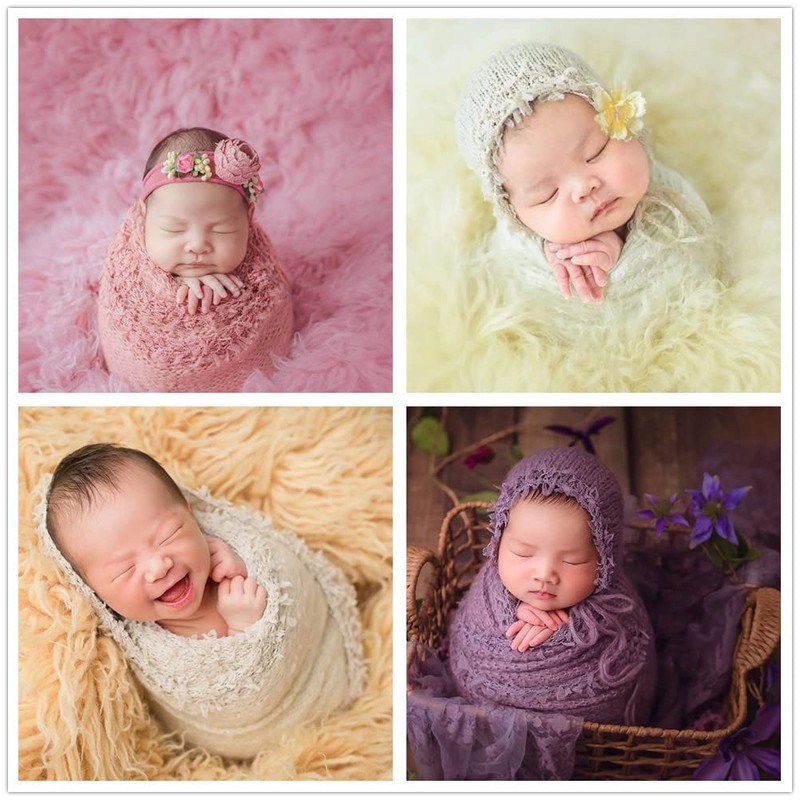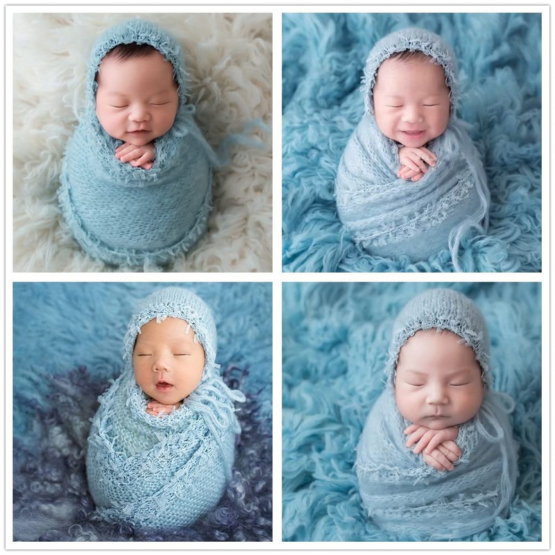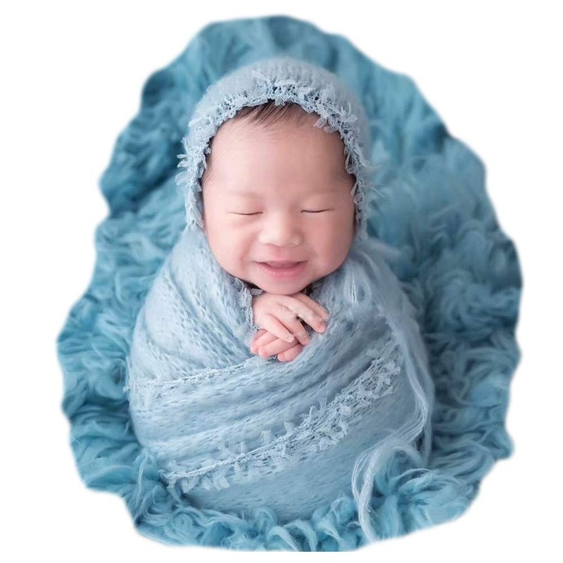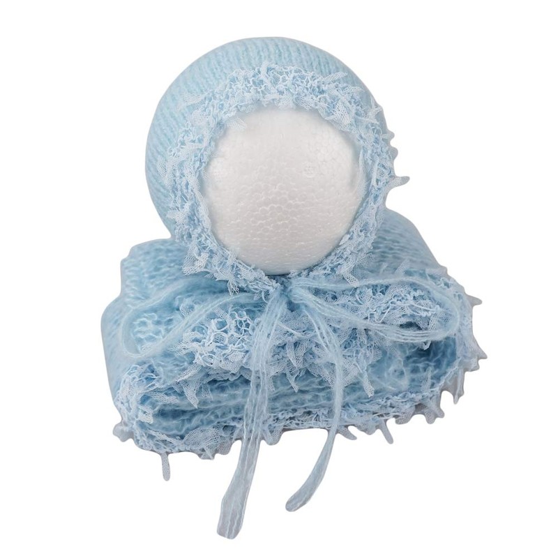 Accesorios de fotografía para bebé, gorro de encaje con manta para recién nacido, conjunto de fotos de princesa, sombrero de envoltura (azul)