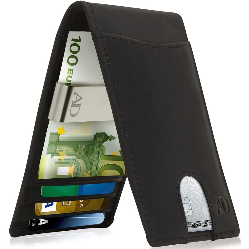 Access Denied Slim Bifold Wallets for Men - Black Crazyhorse Leather Money Clip Mens Wallet RFID Front Pocket Thin Credit Card Holder