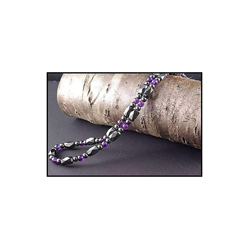 This fashionable natural stone magnetic necklace features a hematite with a glamorous shine and amethyst that enhances your love luck.