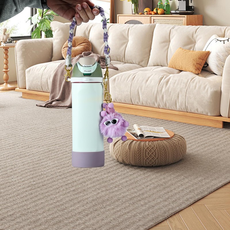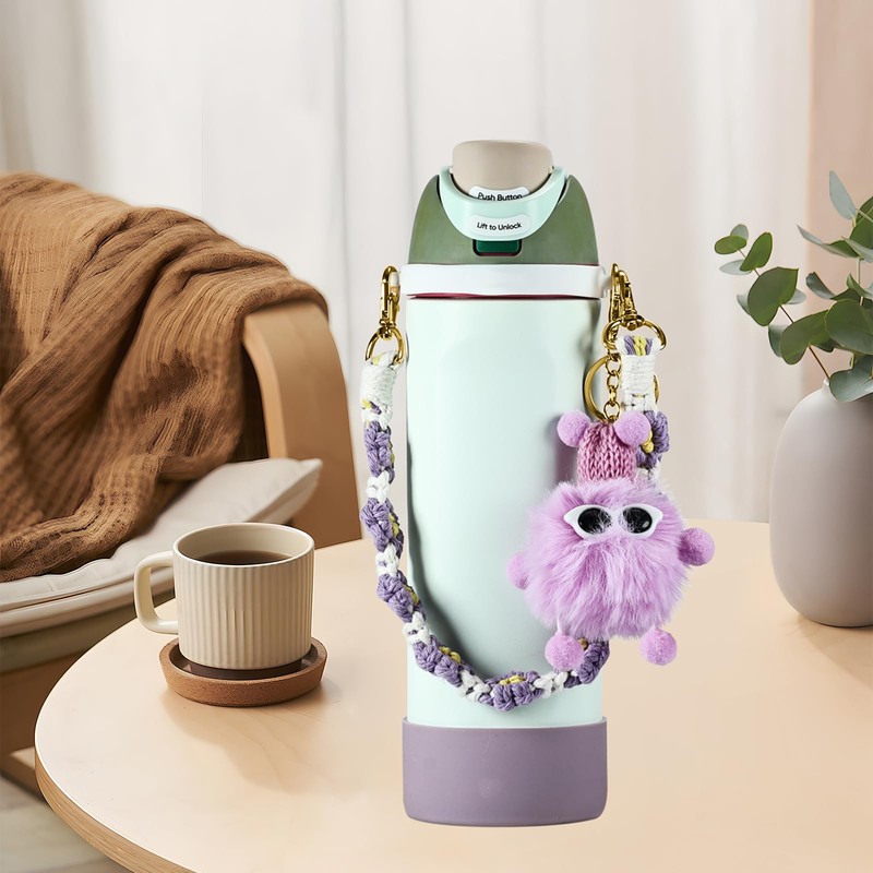 - Cute Water Bottle Handle & Keychain Charms: Our water bottle carrier come with a advanced silicone safety ring and bohemian woven handle strap, unparalleled safety. And the Keychain charm boasts attractive pom pom fluffy ball, so cute it is. Makes them a must have accessory set for your Owala water bottle