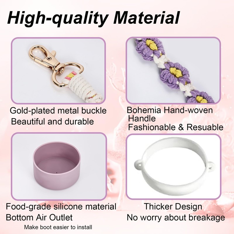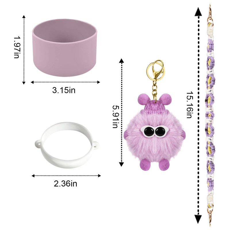 - Package: You will get 4 pcs in total, including 1 pcs water bottle handle, 1 pcs white rubber ring,1 pcs pom pom ball keychain charm and 1 pcs silicone boot for your Owala tumbler 24 oz. Great for yourself, your girls, your families and friends