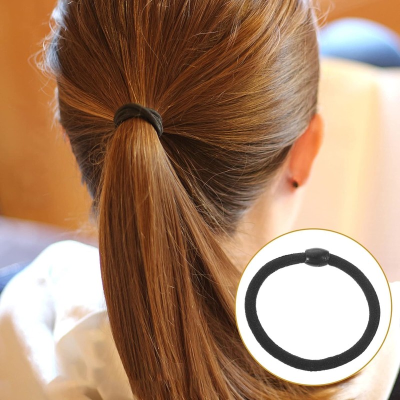 Accessorize Kingdom Hair Ties, Cotton Textured Ponytail Holders, Soft Seamless Elastic Bands for Thick and Thin Hair (Slim Black, 50 count (Pack of 1))