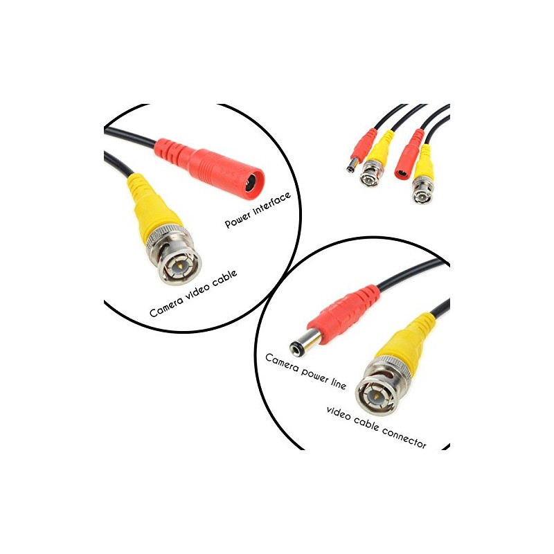 - Package include: 1x Pre-made All-in-One BNC Video and Power Cable Wire Cord; 1x BNC Female to BNC Female Adapter