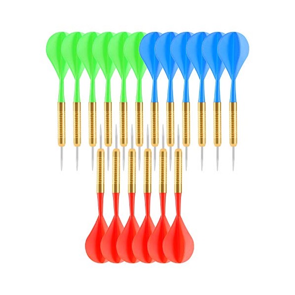 - Package Include: 18 pc steel tip darts. The flights come with 6 of each color: Red, Blue and Green.