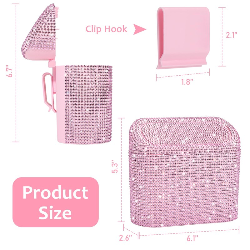 - Suit for Any Vehicle: This bling rhinestone covered trash can with perfect size fit for most type of vehicle, such as cars, trucks, minivans, SUVs, RVs, boats, cabs and more