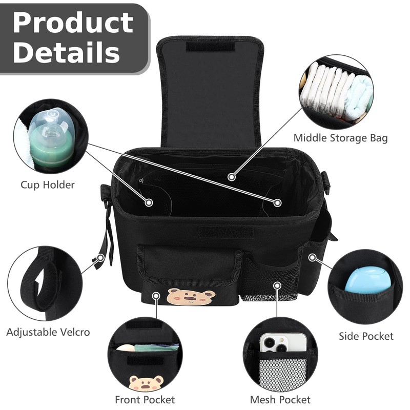 - Easy to Install: Equipped with an adjustable velcro connection strap, this stroller bag can be easily installed on various strollers and remains stable.