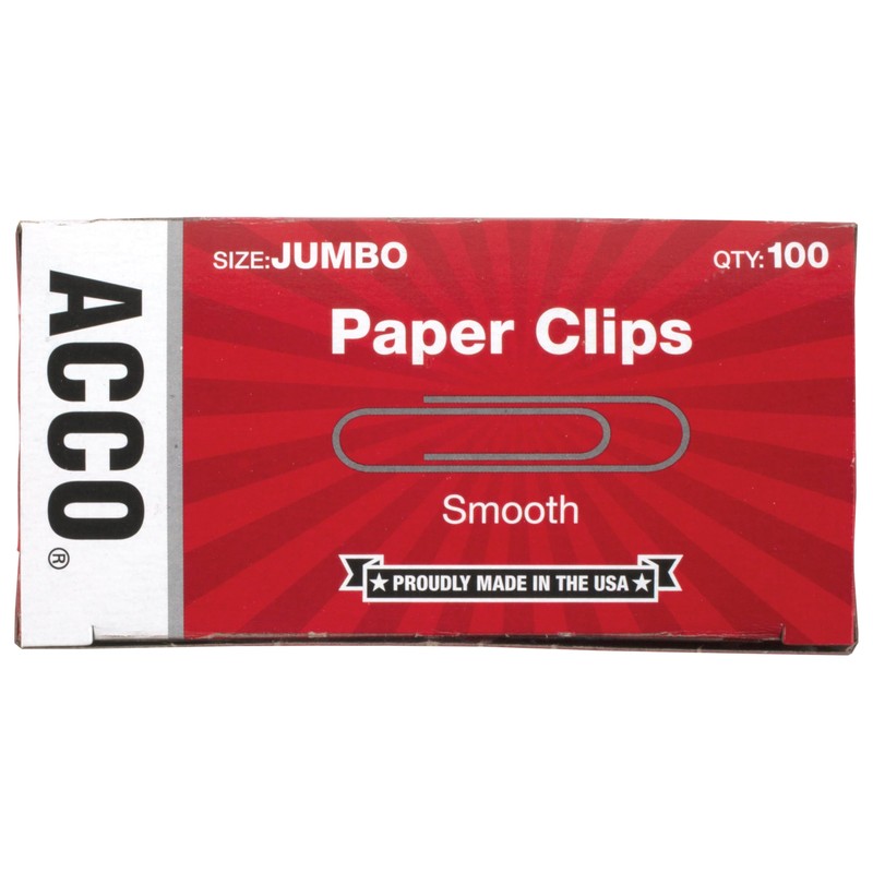 ACCO Paper Clips, Jumbo, Smooth, 100 Clips/Box, 1 Box (72580)