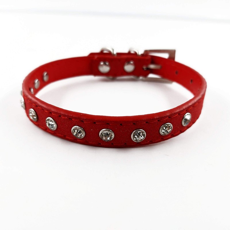 Accod Leather Pet collar for Cats Puppy Small Medium Dogs Adjustable 22-28CM Comfortable Pet Collars (Red)