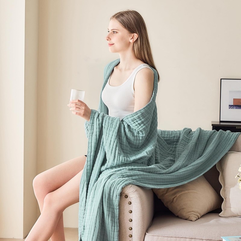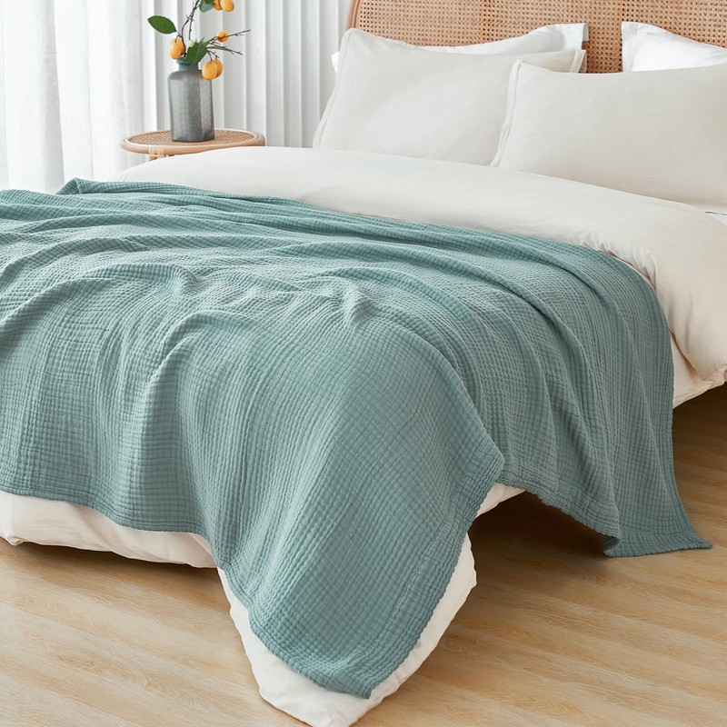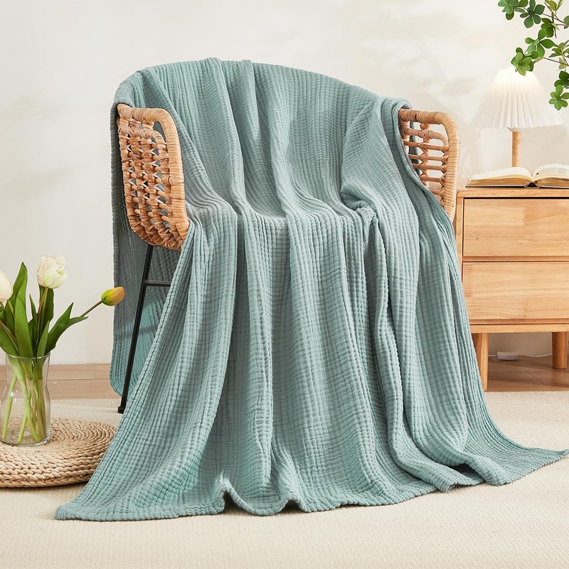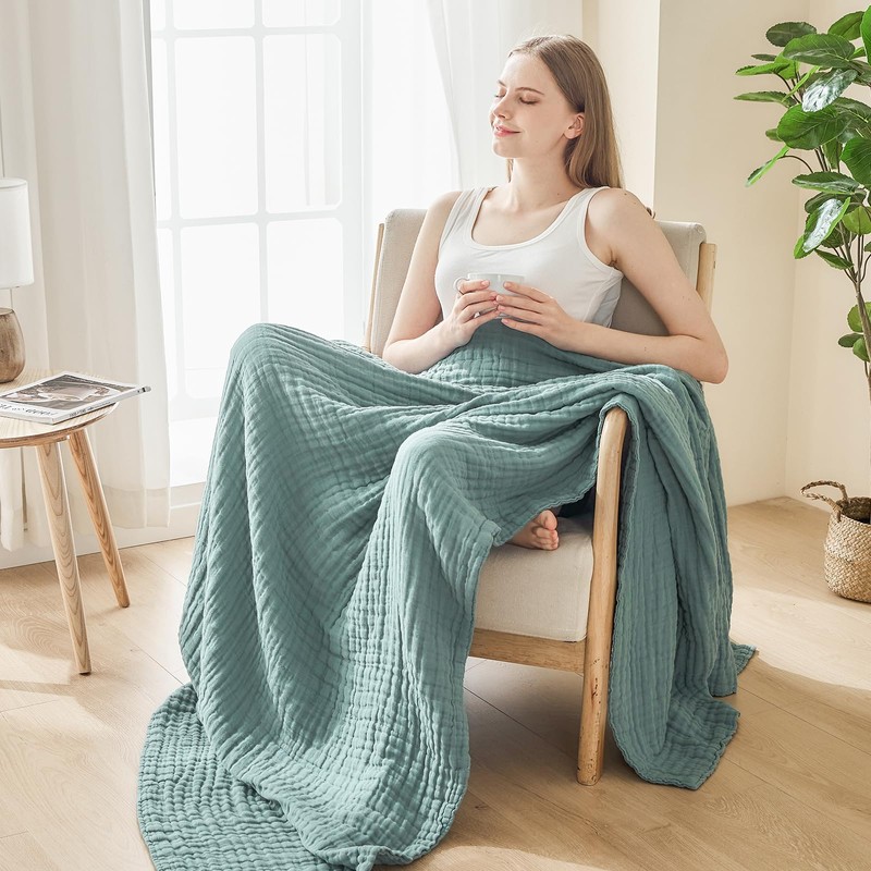 - 100% COTTON MUSLIN: Made of 100% selected cotton muslin, crafted with special woven progress, these muslin cotton blankets are super soft, breathable, absorbent and skin-friendly, offering luxurious comfy feel of a qualified blanket.