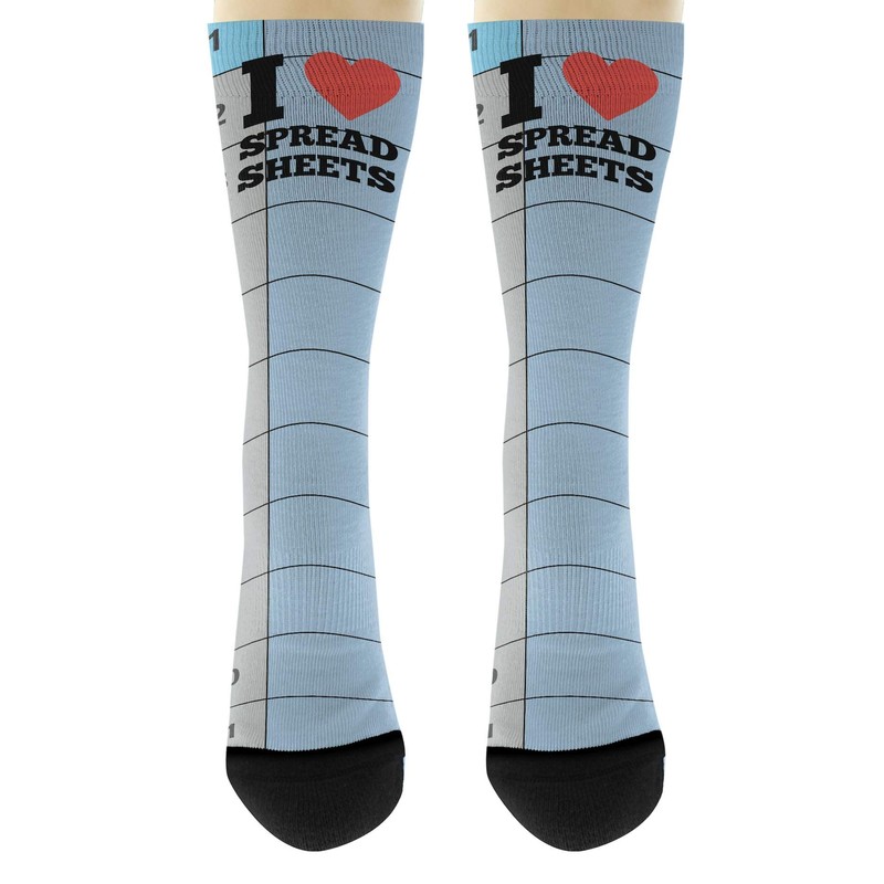 Accounting Socks I Love Spreadsheets 1-Pair Novelty Crew Socks
