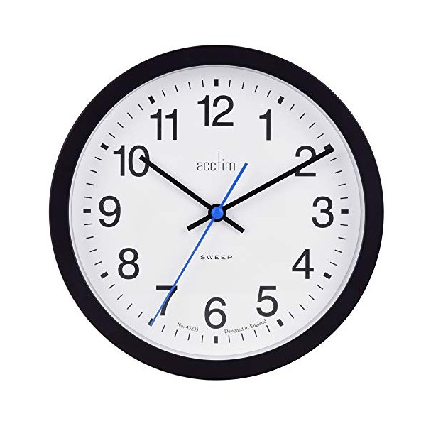 Acctim Bromham Non Ticking Sweep Seconds Hand Wall Clock 20cm Diameter (Black)
