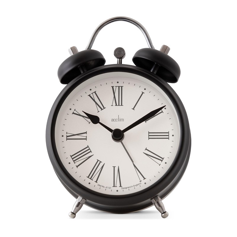 Acctim Shefford Analogue Faux Double Bell Small Alarm Clock (Black)