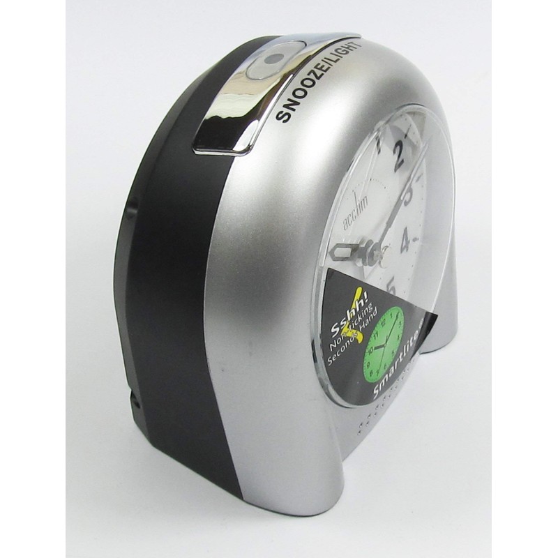 Acctim Sweeper Analogue Alarm Clock Non Ticking Sweep Smartlite® Quartz Silver