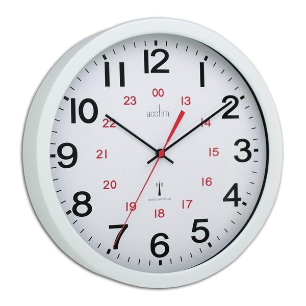 Acctim Wall Clock Radio Controlled 30cm Wht 74172, Metal, White, 30cm x 30 cm