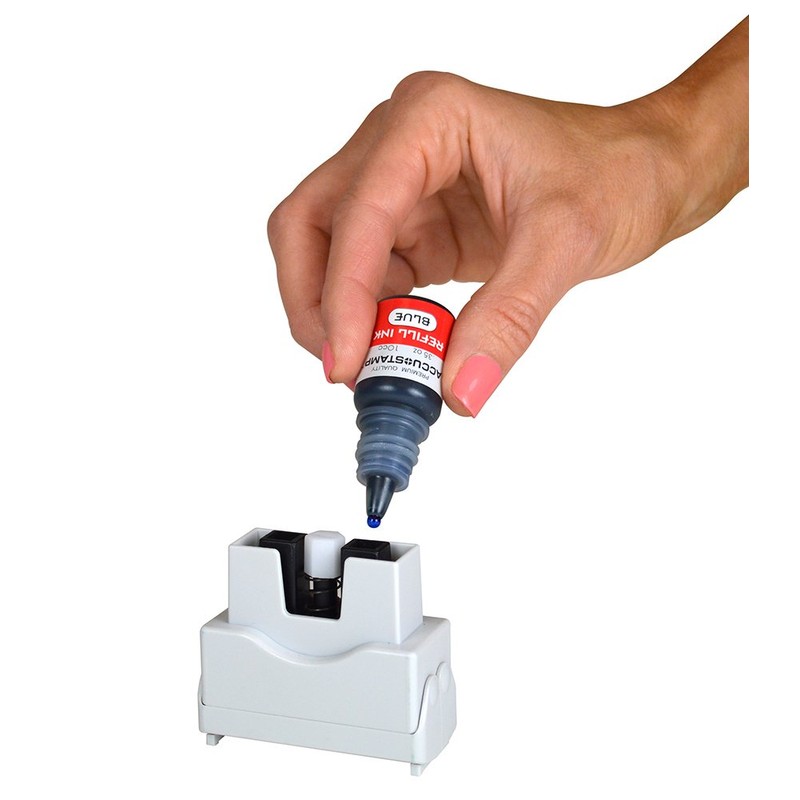 - Re-inkable with ACCU-STAMP2 Pre-Ink Refill Ink, Blue (ASIN# B000F3VWYA/Model# 090682)