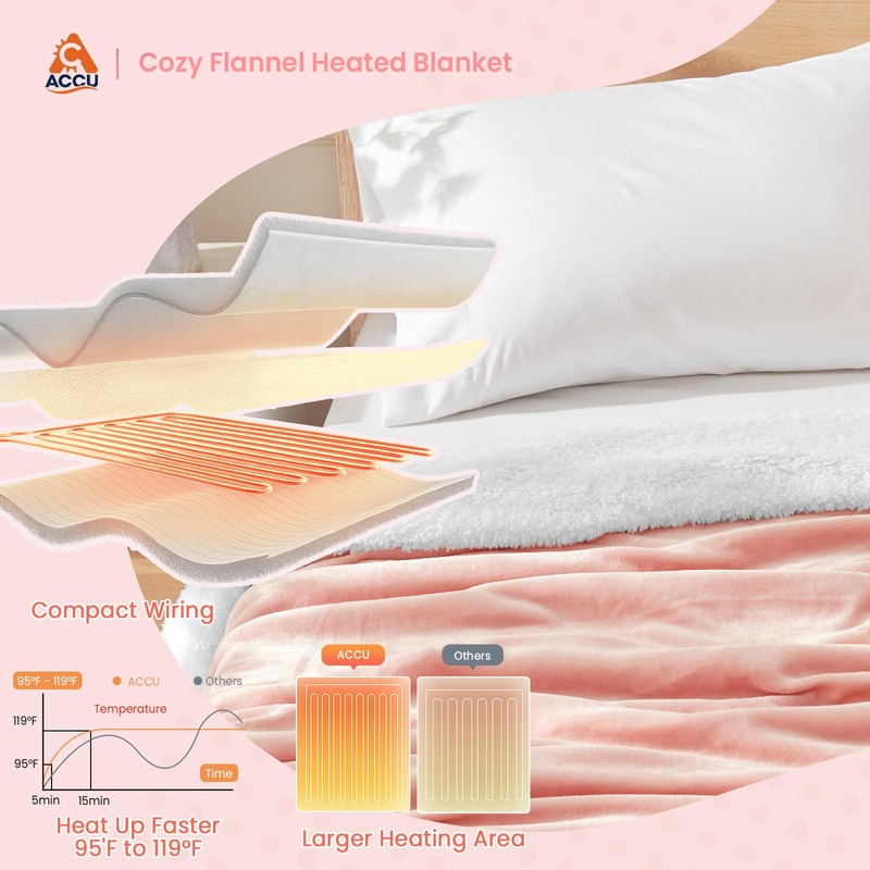 ACCU-WARMTH Cozy Heated Blanket Throw Size - 5-Min Fast Warming Electric Throw Blanket with 6 Heat Settings & 4 Hours Auto-Off, Ideal Gift for Her, 50"x60", Pink