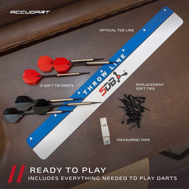 - ADDITIONAL FEATURES - Regulation 15.5" Soft Tip target area. Includes easy fit mounting system with optional no tools required supports. Free app download is loaded with custom game options.