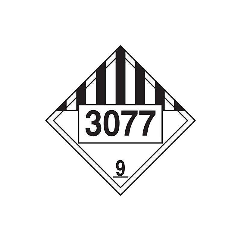 Accuform MPL793VP1 Plastic 4-Digit DOT Placard, Hazard Class 9, "3077" (Environmental Hazard-Solid), 10-3/4" Length x 10-3/4" Width x 0.055" Thickness, Black on White