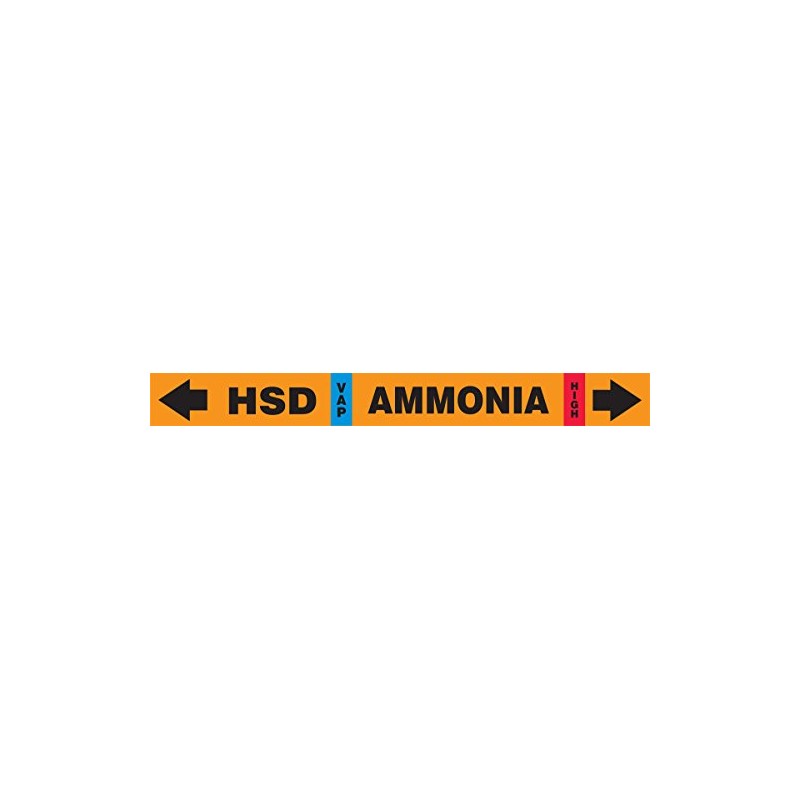 Accuform RAK107S Self-Stick IIAR Ammonia Pipe Marker, HSD/VAP/HIGH for 2-1/2" to 6" OD Pipe, 2-1/2" W x 23-5/8" L, Black/Blue/Red on Orange
