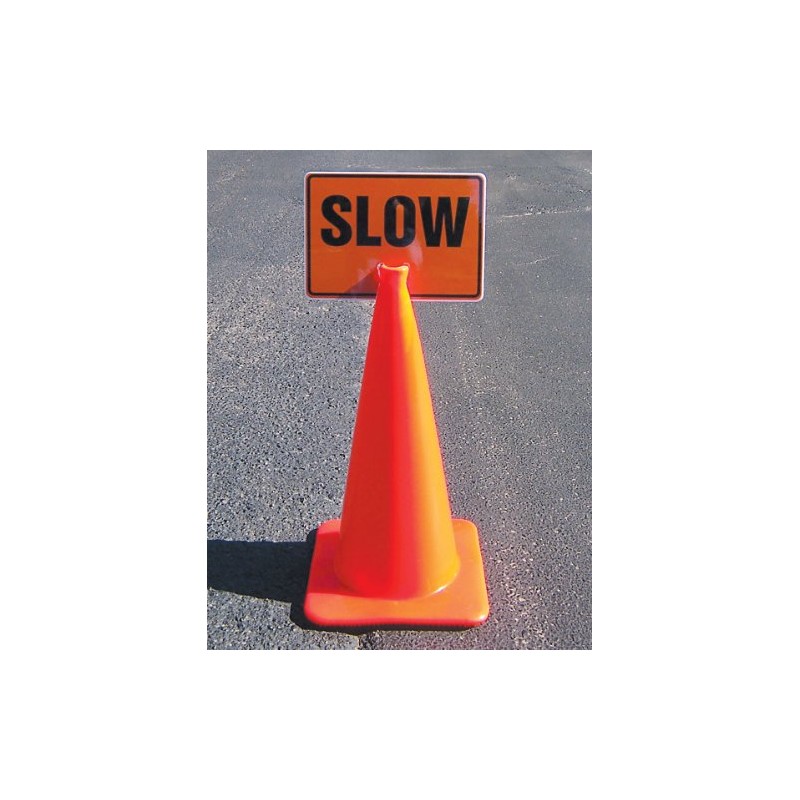 • Sign slips into the top of any flexible traffic cone