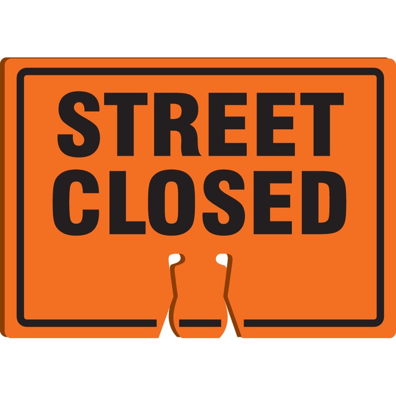 ACCUFORM SIGNS FBC770 Plastic Traffic Cone Top Warning Sign, Legend "Street Closed", 10-Inch Length X 14-Inch Width X 0.060-Inch Thickness, Black on Orange