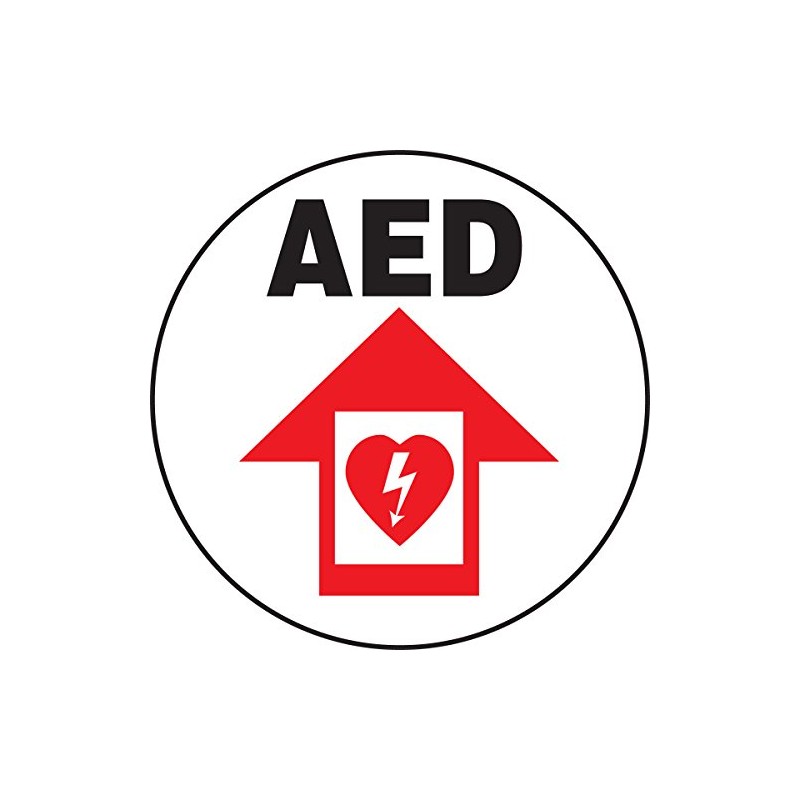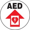AccuformNMC Floor Sign "AED" with Arrow and Symbol, 17" Diameter Non-Slip Adhesive Vinyl AED Emergency Sign, Red/Black on White, Made in the USA, MFS713