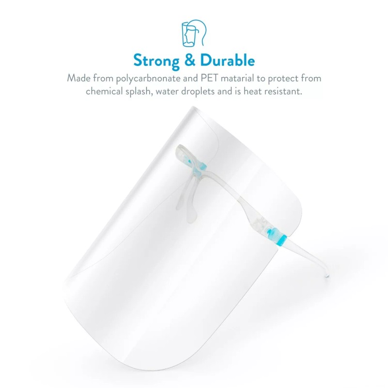 FULL FACE PROTECTION- The AccuMed face shield with glasses frame covers 180 degree protection from outside and unwanted droplets.