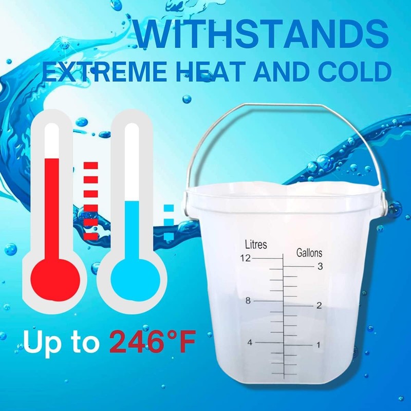 - HIGHLY DURABLE - our 3 gallon measuring bucket is made of high quality, thick plastic with reinforced handles. The 3gallon bucket size is ideal for cleaning as a mop bucket, for watering plants as a water bucket, and more.