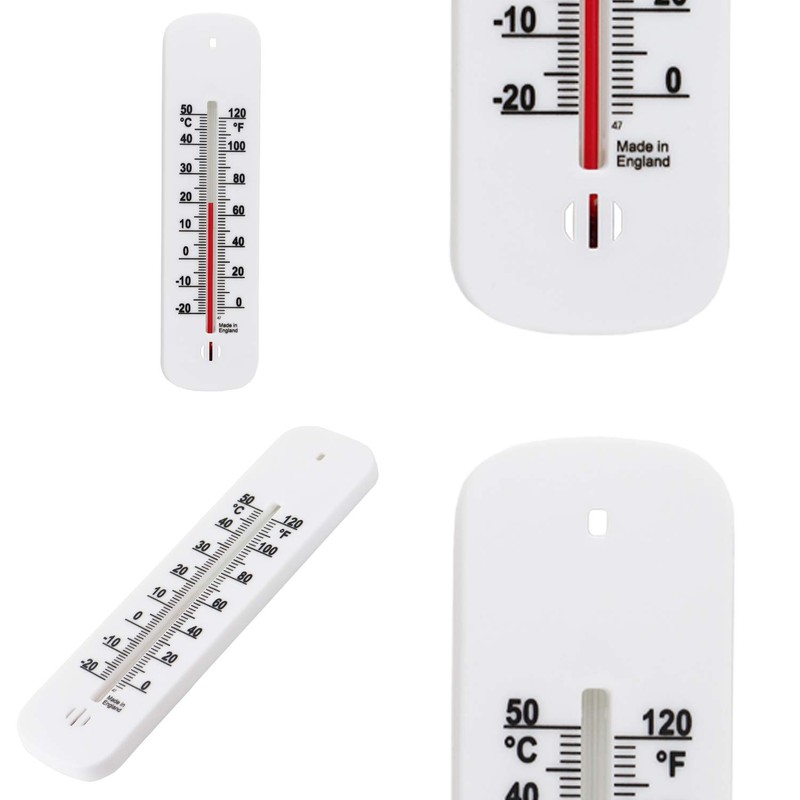 Indoor or outdoor wall thermometer with clear, easy to read black temperature scale on white plastic moulding. This accurate thermometer can be used both indoors and outdoors. The thermometer is so versatile it is ideal for use in the home, bedroom, office, factory, warehouse, greenhouse or the garden. Room temperatures can be measured in both °C and °F.