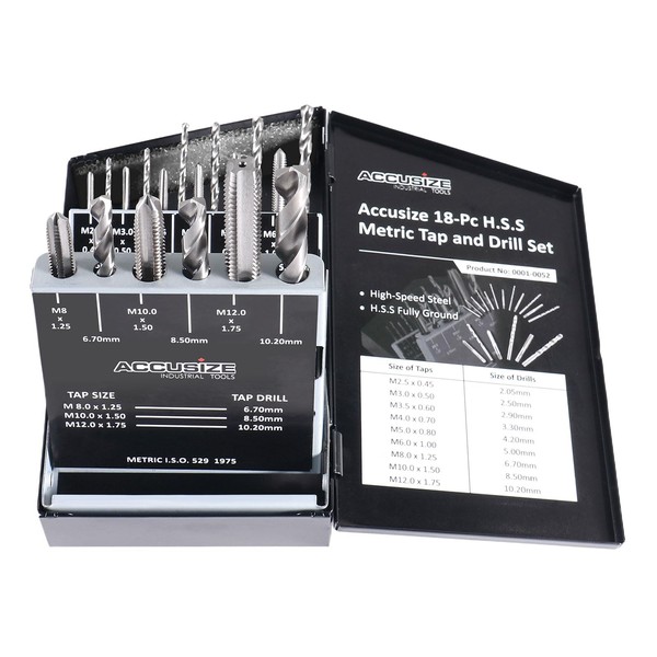 Accusize Industrial Tools Metric 18 Pc H.S.S. Tap and Drill Set, 0001-0052