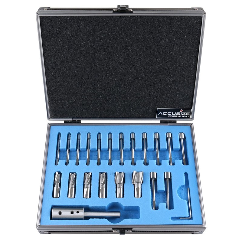 Accusize Industrial Tools 21 Piece Metric H.S.S. Interchangeable Pilot Counterbore Set, Straight Shank, 8.5-16.5 mm, 3620-0122