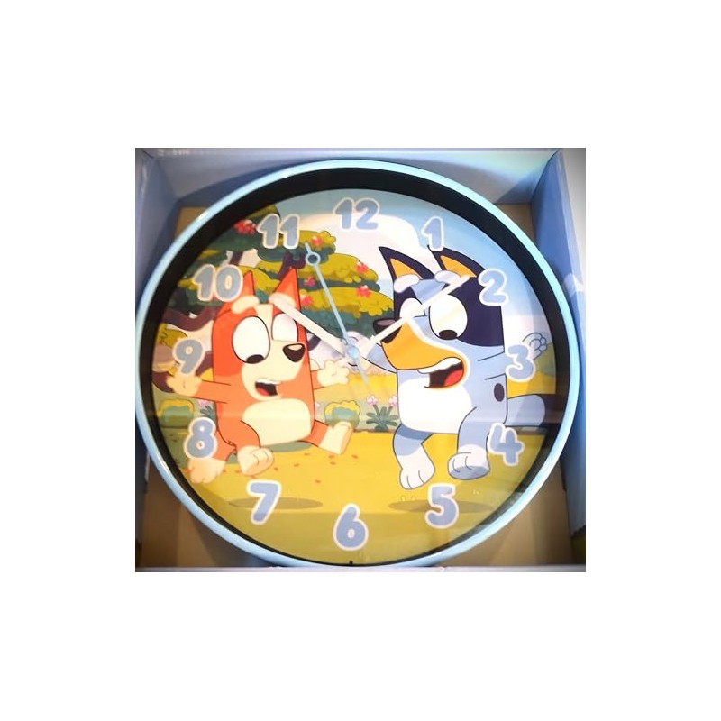 - DESIGN: Colorful Bluey-themed wall clock featuring beloved characters from the popular animated movies