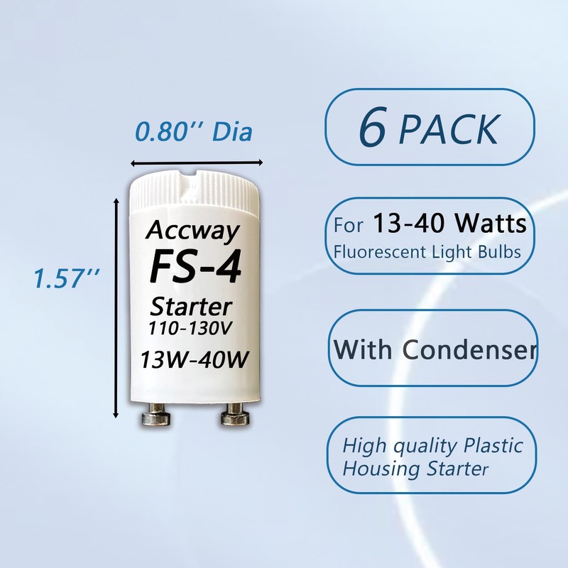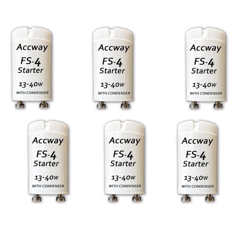 Accway 6 Pack FS-4 Fluorescent Lamp Starter with Condenser,Fuse for 13-30-40 Watt Straight Linear/Circular Bulb, Compatible FS-U 4-30W 120V