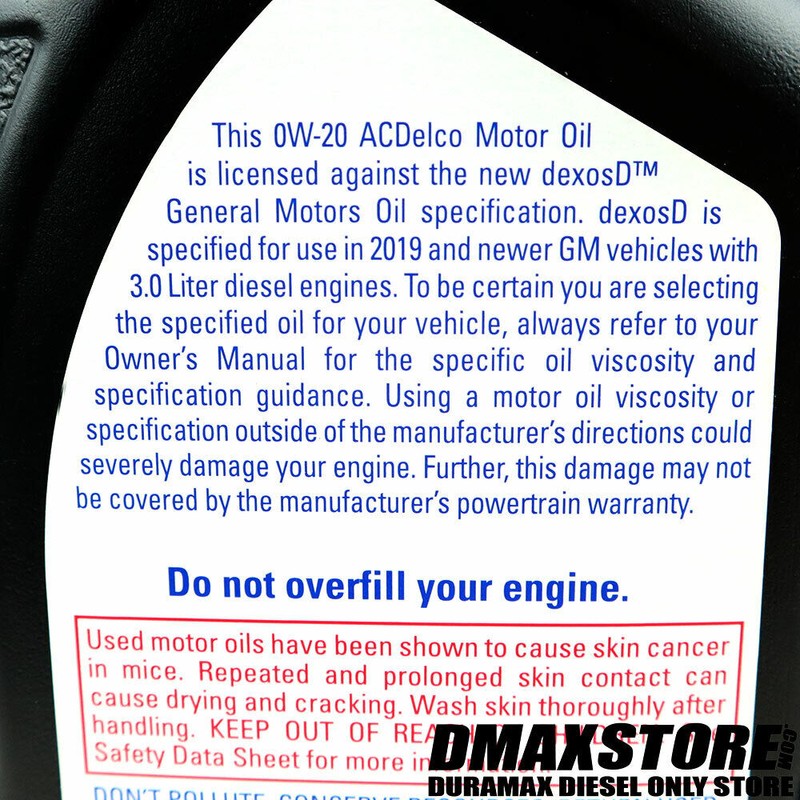 7 - Quarts AC Delco DexosD 0W-20 Light Duty Diesel Engine Oil
